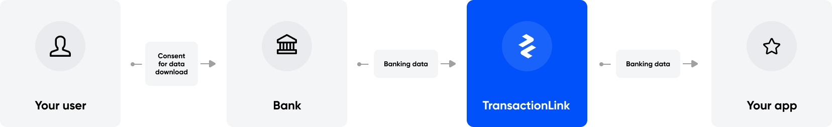 Upon your user consent, TransactionLink connects to their bank to download their data.
